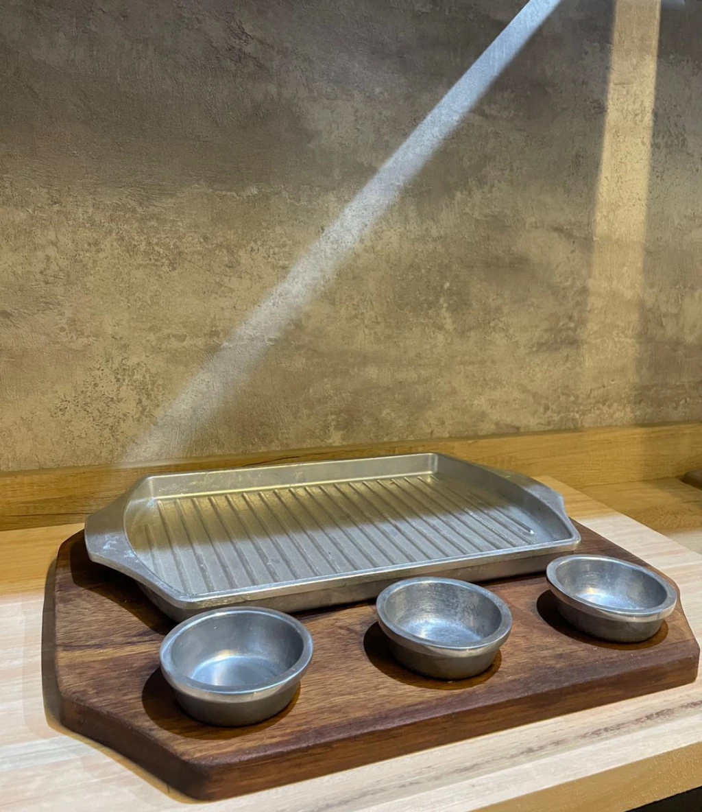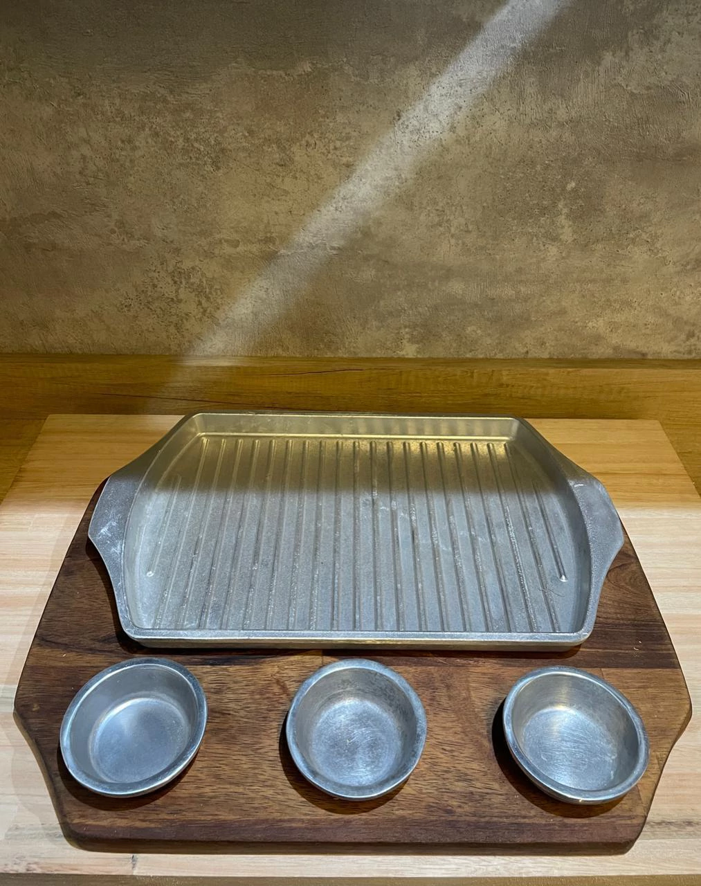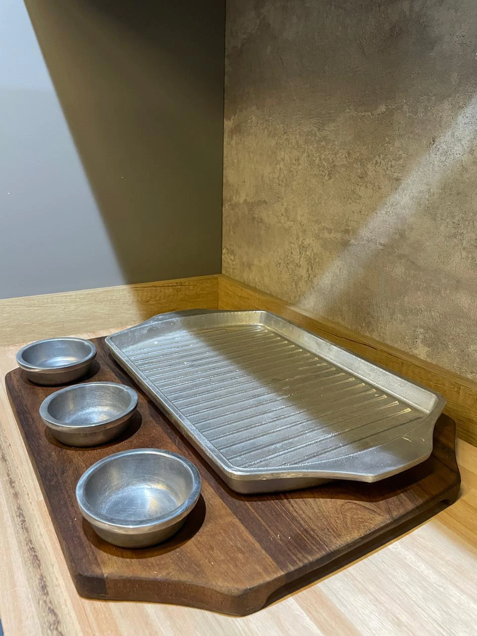 Tabla Grilla Grande con dips y tabla de madera Guayubira